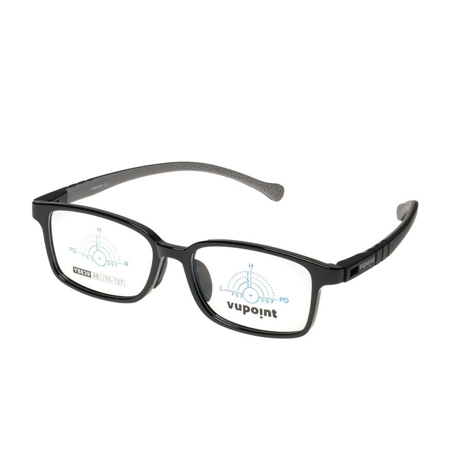 Producator: vupoint<br>Model: Y8839 C1<br>Pentru: Copii<br>Culoare rama: Negru<br>Stil rama: Rectangular<br>Material rama: Plastic<br>Tip rama: Rama completa<br>Latime lentile: 48 mm<br>Lungime brate: 137 mm<br>Punte nazala: 15 mm<br>Inaltime lentile: 33 mm<br>Latime rama: 132 mm