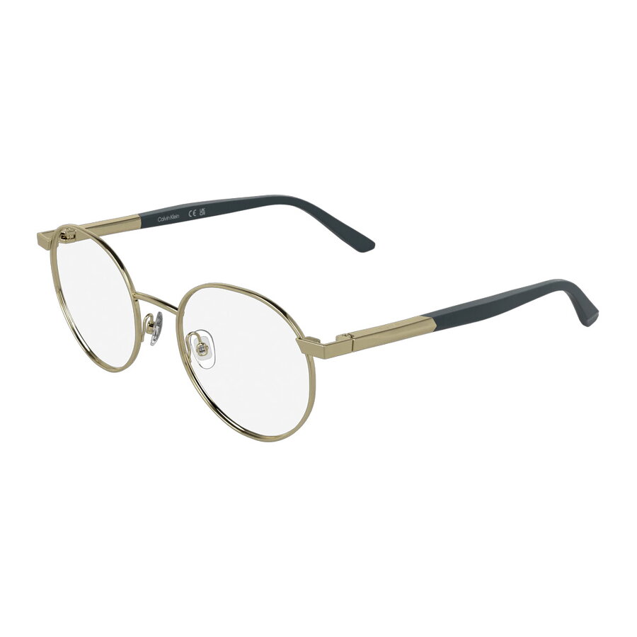 Producator: Calvin Klein<br>Model: CK25112 717<br>Pentru: Unisex<br>Culoare rama: Auriu<br>Stil rama: Rotund<br>Material rama: Metal<br>Tip rama: Rama completa<br>Latime lentile: 50 mm<br>Lungime brate: 145 mm<br>Punte nazala: 20 mm