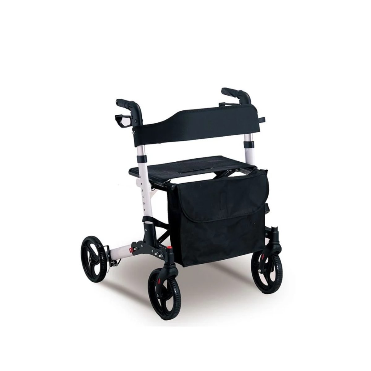 Rolator cu 4 roti din aluminiu si scaunel pentru uz zilnic in cazul persoanelor cu probleme de mobilitate.Marele avantaj al dispozitivului de mers este ca indeplineste o dubla functie, de cadru rolator si fotoliu rulant.