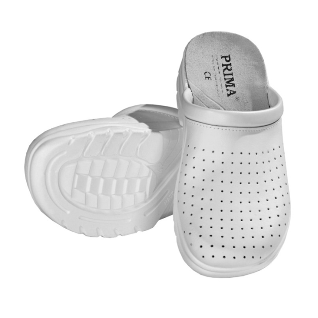Saboti albi din piele, perforati, cu talpa antiderapanta, marimi 35-40 - sunt alegerea ideala pentru profesionistii care petrec multe ore in picioare – medici, asistente, farmacisti, barmani, bucatari sau personal din industria alimentara. Confortabili si rezistenti, acestia sunt realizati din piele de calitate, cu partea frontala perforata pentru aerisirea optima a picioarelor si talpa antiderapanta ce asigura siguranta pe suprafete umede sau alunecoase.
