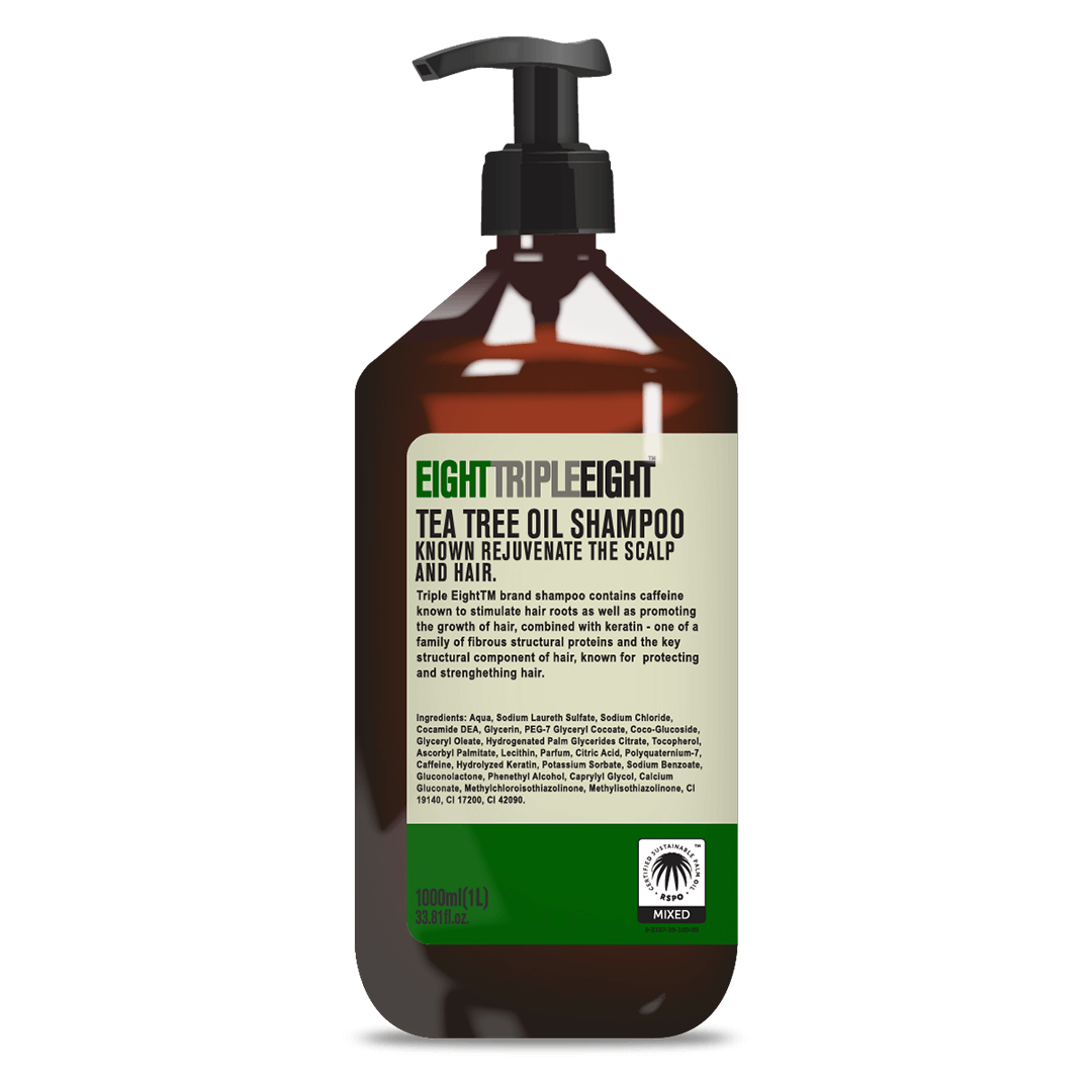 Acest produs Sampon cu ulei de arbore de ceai, 1l, Eight Triple Eight din categoria Frumusete si ingrijire se poate comanda online la un pret redus.