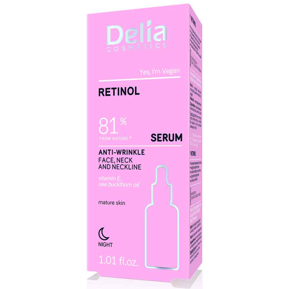 Acest produs Ser antirid cu retinol pentru fata & decolteu, 30ml, Delia Cosmetics din categoria Frumusete si ingrijire se poate comanda online la un pret redus.