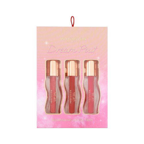 Setul Dream Pout Lip Oil Trio de la Profusion Cosmetics aduce hidratare, stralucire si culoare intr-un format compact, perfect pentru orice ocazie.