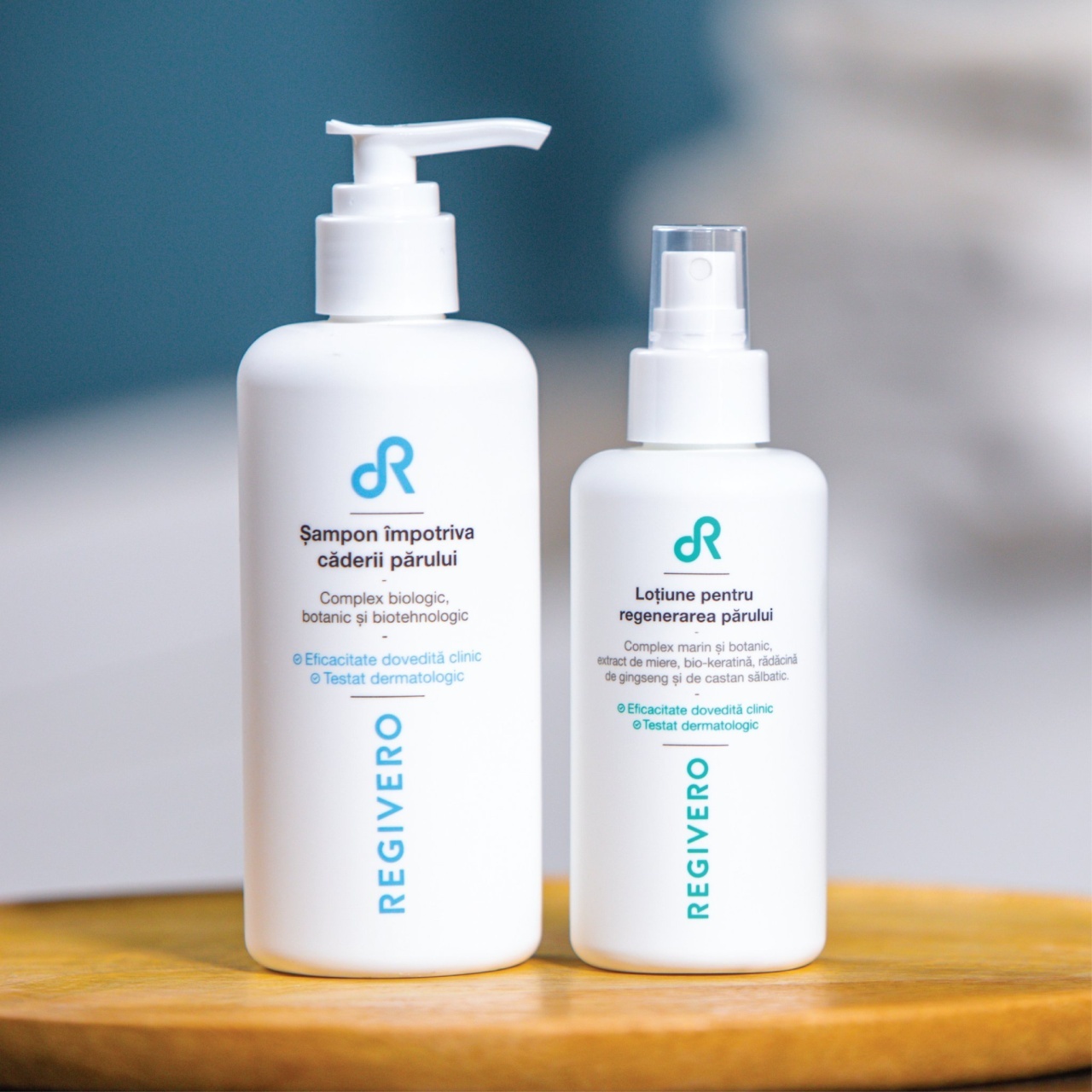 Set ingrijire par pentru stimularea cresterii, efect reparator, stralucire si volum – Regivero Descriere produs Reda stralucirea si vitalitatea parului tau cu setul profesional Regivero , o solutie naturala pentru stimularea cresterii si regenerarea firelor de par. Formulat cu extracte active, vitamine si proteine, tratamentul fortifica radacina, reduce caderea parului si ofera volum si luminozitate parului inca din primele saptamani de utilizare. Beneficii Reduce considerabil caderea parului Stimuleaza cresterea firelor noi Reface structura si elasticitatea parului Hraneste radacina si fortifica firul de par Ofera volum, stralucire si vitalitate Protejeaza impotriva stresului oxidativ si factorilor de mediu Hidrateaza si previne exfolierea scalpului Prelungeste durata de viata a firului de par Recomandat pentru Caderea parului si regenerare lenta Par deteriorat, fragil, uscat sau lipsit de volum Fire despicate, scalp sensibil sau deshidratat Par vopsit, tratat chimic sau gras Par subtire, cret sau normal Cum actioneaza tratamentul Regivero Setul Regivero sustine regenerarea si fortificarea parului in 4 etape esentiale: Activeaza circulatia scalpului prin extract de castan salbatic, proteina placentara si vitaminele din grupa B. Hraneste si intareste firul de par cu 15 ingrediente naturale (vitaminele B3, B5, B6, B7, elastina, serina marina, ginseng, miere, masline, keratina, arginina si colagen marin). Energizeaza si stimuleaza regenerarea datorita glicogenului – sursa de energie pentru sinteza proteinelor. Protejeaza impotriva stresului oxidativ (raze UV, poluare, stres, medicatie) prin polifenoli din ginseng, masline si biokeratina. Componentele setului Sampon impotriva caderii parului (250 ml) – curata delicat scalpul, stimuleaza circulatia si pregateste radacina pentru tratament. Lotiune pentru regenerarea parului (150 ml) – formula concentrata, patrunde in profunzime, stimuleaza cresterea si reda elasticitatea firelor. Beneficii exclusive Regivero Consultanta gratuita personalizata – ghidare de la specialisti in ingrijirea parului. Schema de tratament individualizata – folosire corecta pentru rezultate rapide. Garanție 60 zile – daca rezultatele nu apar, primesti banii inapoi integral. Rezultate vizibile In primele 2 saptamani: par mai moale si mai stralucitor. In 30 de zile: reducerea caderii parului. In 60 de zile: regenerare vizibila si volum crescut. Prezentare Setul contine: 1 x Sampon Regivero 250 ml 1 x Lotiune regeneranta Regivero 150 ml Producator: Regivero Tara de origine: Romania