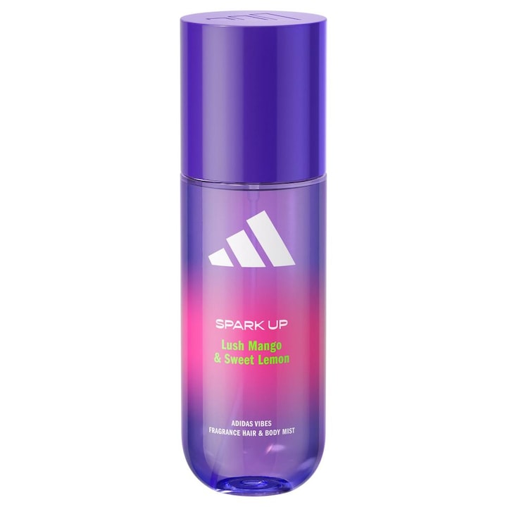 Adidas Spark Up, spray parfumat pentru corp si par cu note fructate de mango si lamaie dulce, ofera prospetime, energie si o stare pozitiva. Formula blanda, potrivita pentru par.