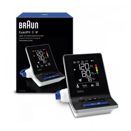 Tensiometru de brat Braun ExactFit 3 BUA6150 Descriere produs Braun ExactFit 3 (BUA6150) este un tensiometru de brat digital, cu acuratete profesionala, testat clinic conform standardelor Societatii Europene a Hipertensiunii (SEH) . Este prevazut cu ecran mare iluminat , sistem de umflare blanda a mansonului pentru confort optim si functii avansate de monitorizare a sanatatii cardiovasculare. Caracteristici principale Afisaj XL luminat, usor de citit; Umflare blanda a mansonului pentru confort maxim; Acuratete profesionala dovedita clinic (metoda SEH); Calcul automat al mediei ultimelor 3 masuratori ; Detecteaza batai neregulate ale inimii (aritmii); Include 2 mansete de dimensiuni diferite (S-M si L-XL); Memorie pentru 2 utilizatori , cate 40 de masuratori fiecare; Interfata intuitiva, potrivita pentru uz casnic si profesional. Beneficii Permite monitorizarea tensiunii arteriale acasa, cu precizie de cabinet medical; Ofera o interpretare instantanee a rezultatelor, conform ghidurilor OMS ; Confort sporit la utilizare datorita sistemului de presiune adaptiva; Posibilitate de analiza in timp prin aplicatia Braun Healthy Heart (App Store & Google Play); Ideal pentru intreaga familie. Continut pachet Tensiometru Braun ExactFit 3 2 mansete (S-M si L-XL) 4 baterii AA Geanta de depozitare Manual de instructiuni si ghid de utilizare rapida Specificatii tehnice Model: BUA6150 Tip dispozitiv: Tensiometru digital de brat Afisaj: Ecran iluminat, cifre mari Memorie: 2 utilizatori x 40 masuratori Alimentare: 4 baterii AA (incluse) Clasa dispozitiv: Medical clasa IIa Garantie: 2 ani Mod de utilizare Fixati manseta corespunzatoare pe brat, la 2-3 cm deasupra cotului. Porniti dispozitivul si stati relaxat in timpul masurarii. Cititi valorile afisate pe ecran si, daca doriti, salvati-le in aplicatia Braun Healthy Heart . Producator: Braun Cod produs: BUA6150 EAN: 4022167116505