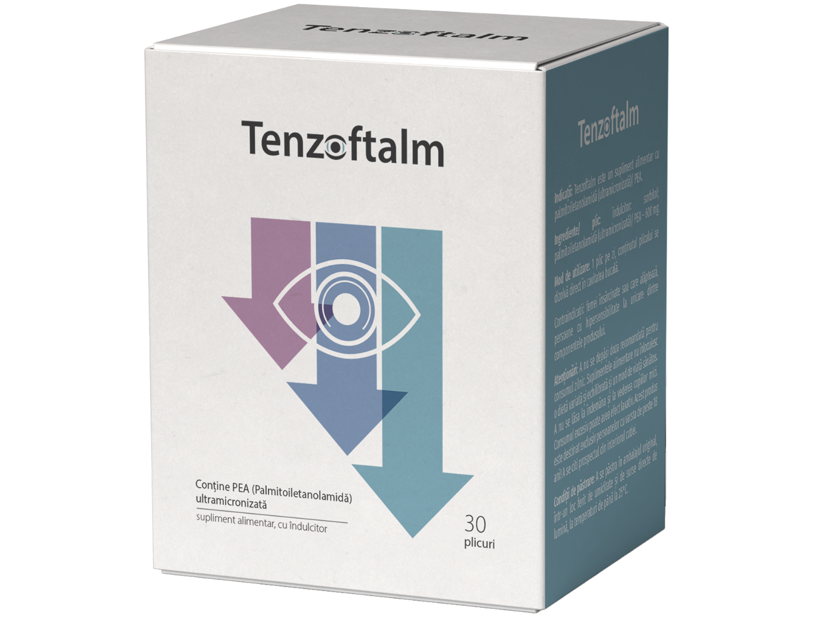 Tenzoftalm este o formula speciala bazata pe compusul natural palmitoiletanolamida (PEA), care regleaza activitatea celulelor sistemului nervos si imunitar si contribuie fiziologic la mentinerea presiunii normale a ochilor.