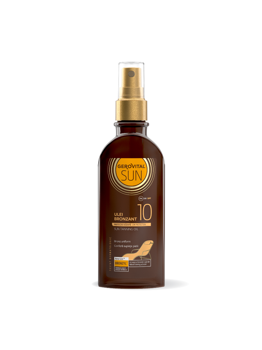 Acest produs Ulei Bronzant Spf 10 Sun din categoria Gerovital Sun se poate comanda online la un pret redus.