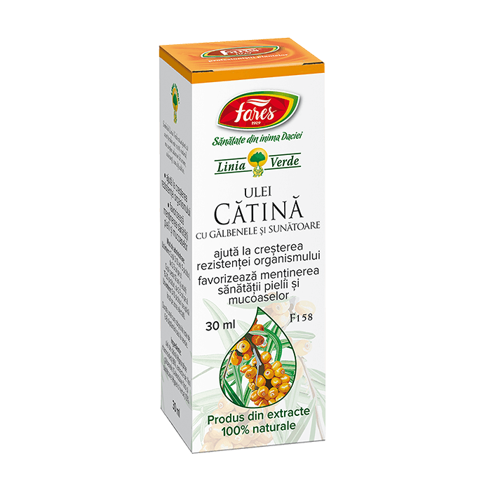 Acest produs Ulei de catina cu galbenele si sunatoare F158, 30ml, Fares din categoria Frumusete si ingrijire se poate comanda online la un pret redus.