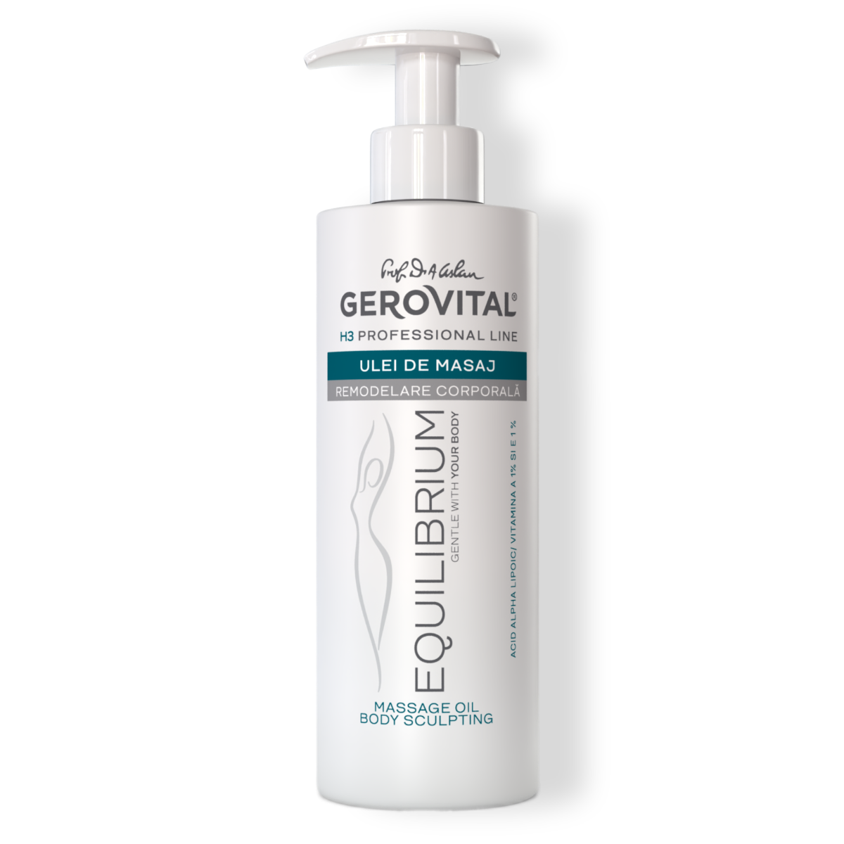 Gerovital® H3 Prof. Dr. Ana Aslan Equilibrium Ulei de Masaj Remodelare Corporală -  este un produs special conceput pentru îngrijirea pielii cu aspect de "coajă de portocală". Acesta este un bun emolient şi se poate masa uşor pe timp îndelungat, ceea ce contribuie la eliminarea depunerilor de grăsime şi la tonifierea musculaturii....