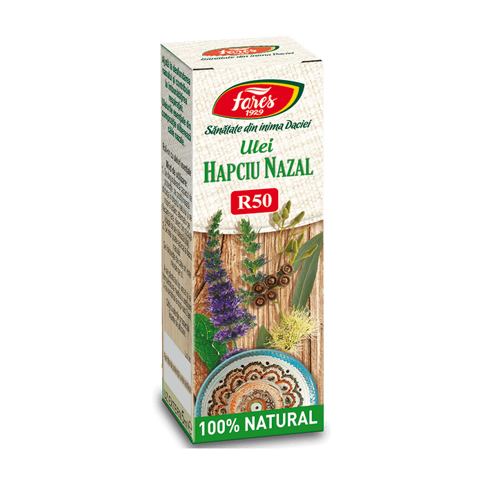 Acest produs Ulei decongestionant nazal Hapciu Nazal R50, 5ml, Fares din categoria Suplimente alimentare se poate comanda online la un pret redus.