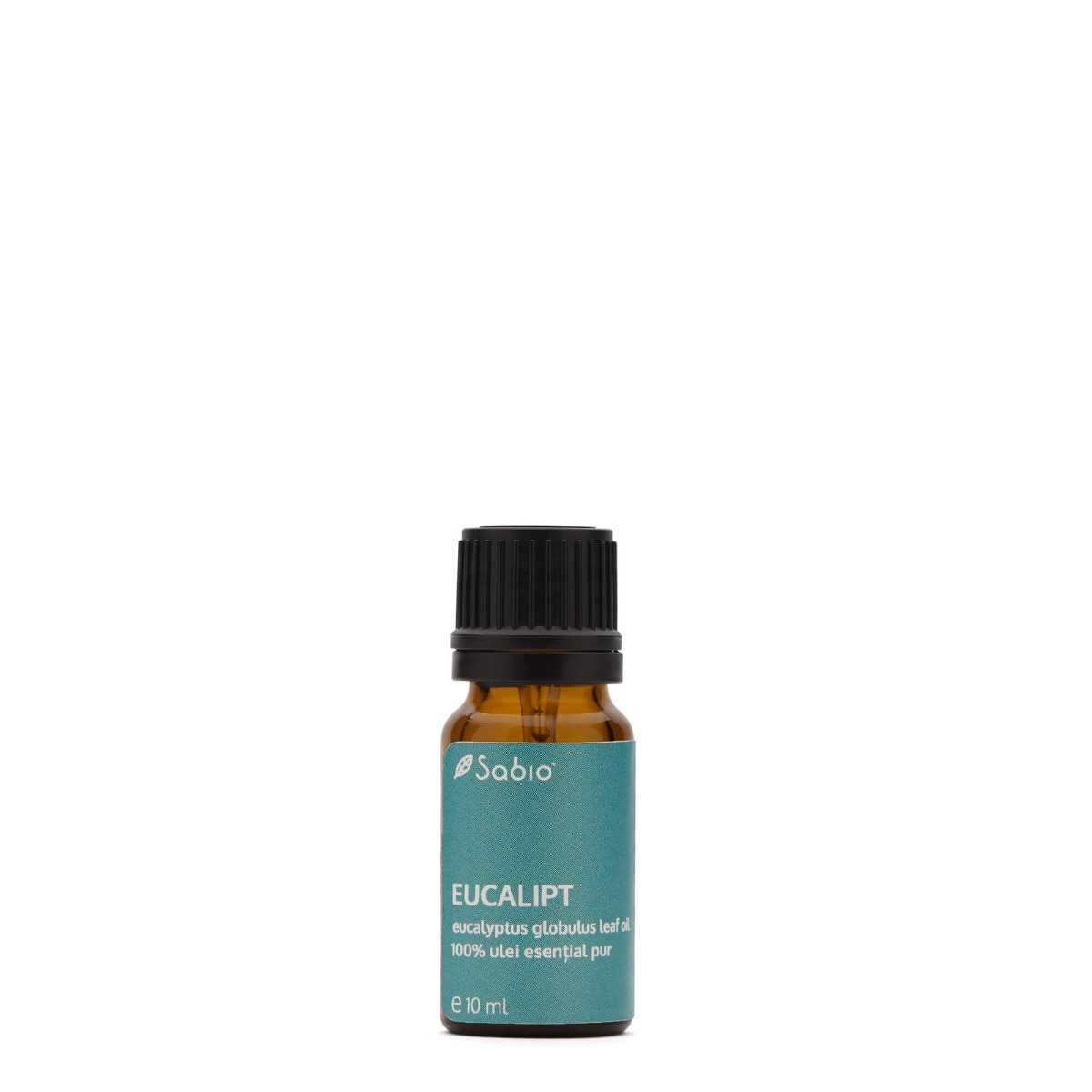 Ulei esential de Eucalipt, Sabio – ulei natural cu aroma proaspata si revigoranta, cu efect antibacterian, antiviral si respirator, ideal pentru masaj, aromaterapie si purificarea aerului.