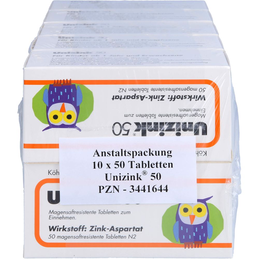 03441644: Köhler Pharma GmbH - Unizink 50 magensaftresistente Tabletten 500 St