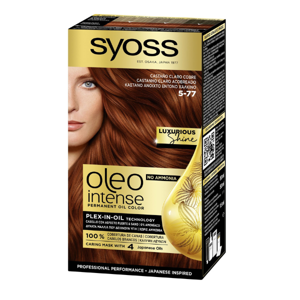 SYOSS OLEO INTENSE PERMANENT OIL COLOR este vopseaua de par conceputa pentru realizarea unei culori cu aspect sanatos. Cu o formula fara amoniac, blanda cu firul de par, asigura o acoperire totala a firelor albe.